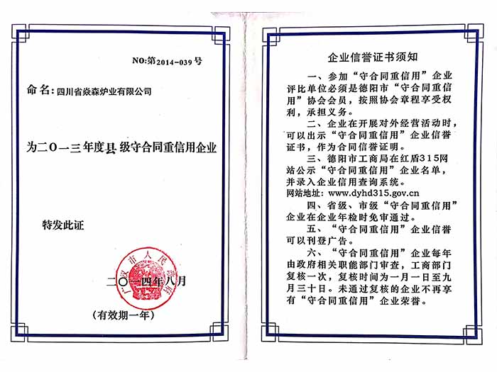 2、廣漢市守合同重信用企業(yè)、企業(yè)信用等級3A單位等榮譽資質(zhì)